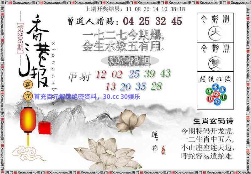 295期:🍀稳赚六尾【045689尾】开:牛05准 |
